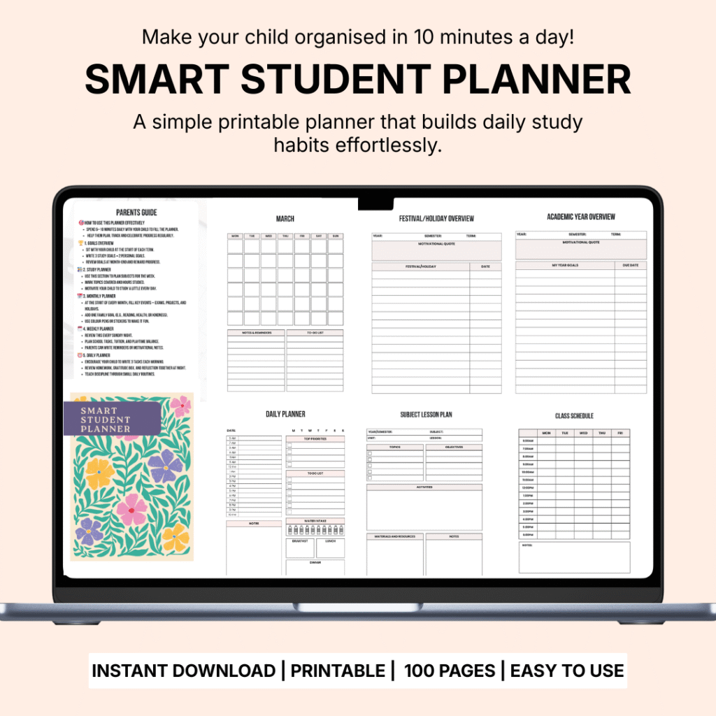 You get 100 pages in the Undated Planner, 100 pages in the 2026 Planner, plus a 2-page Parent Guide and bonus worksheets.